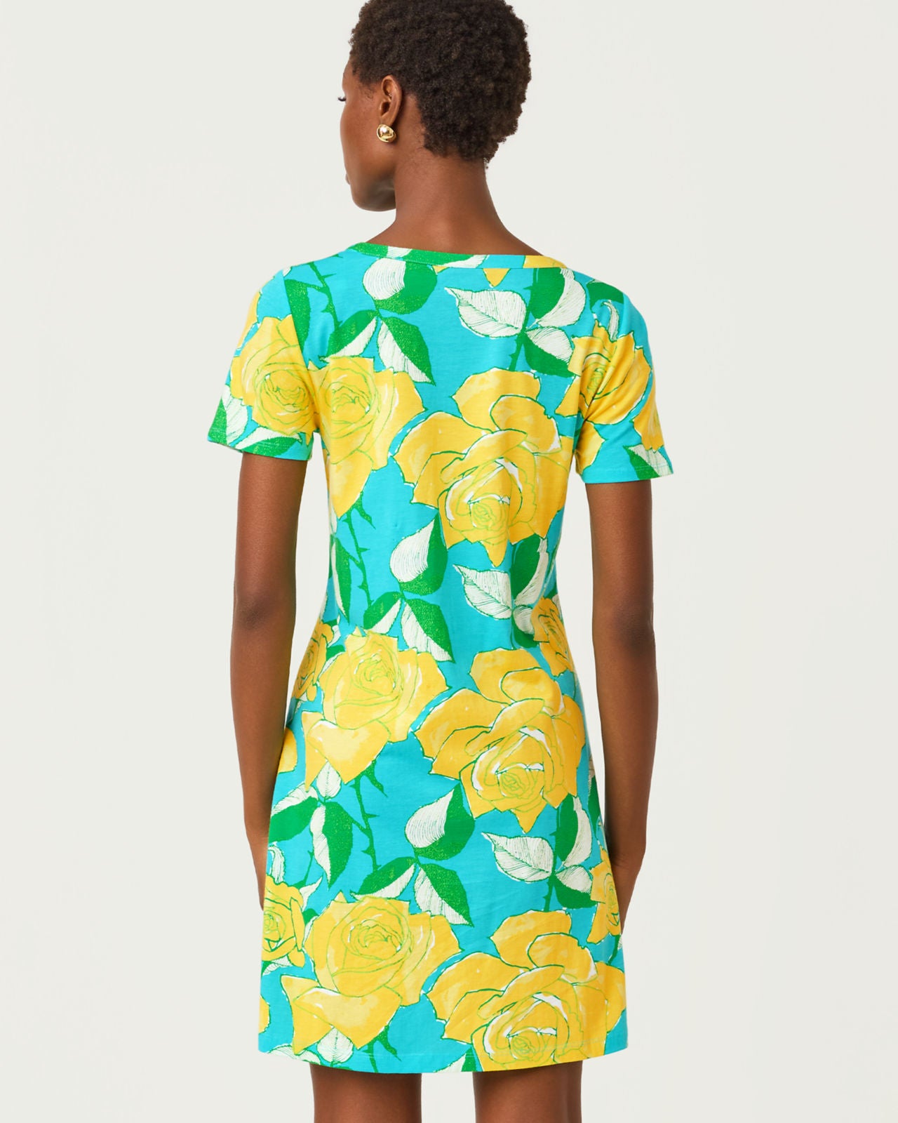 Cody Short Sleeve Dress In Blue Curacao Rose Bud