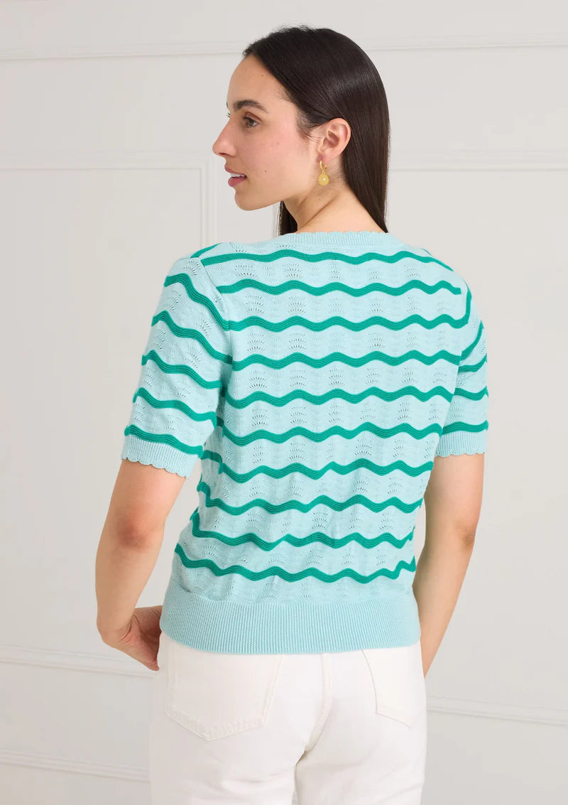 The Natalie Sweater in Aqua Wave Knit