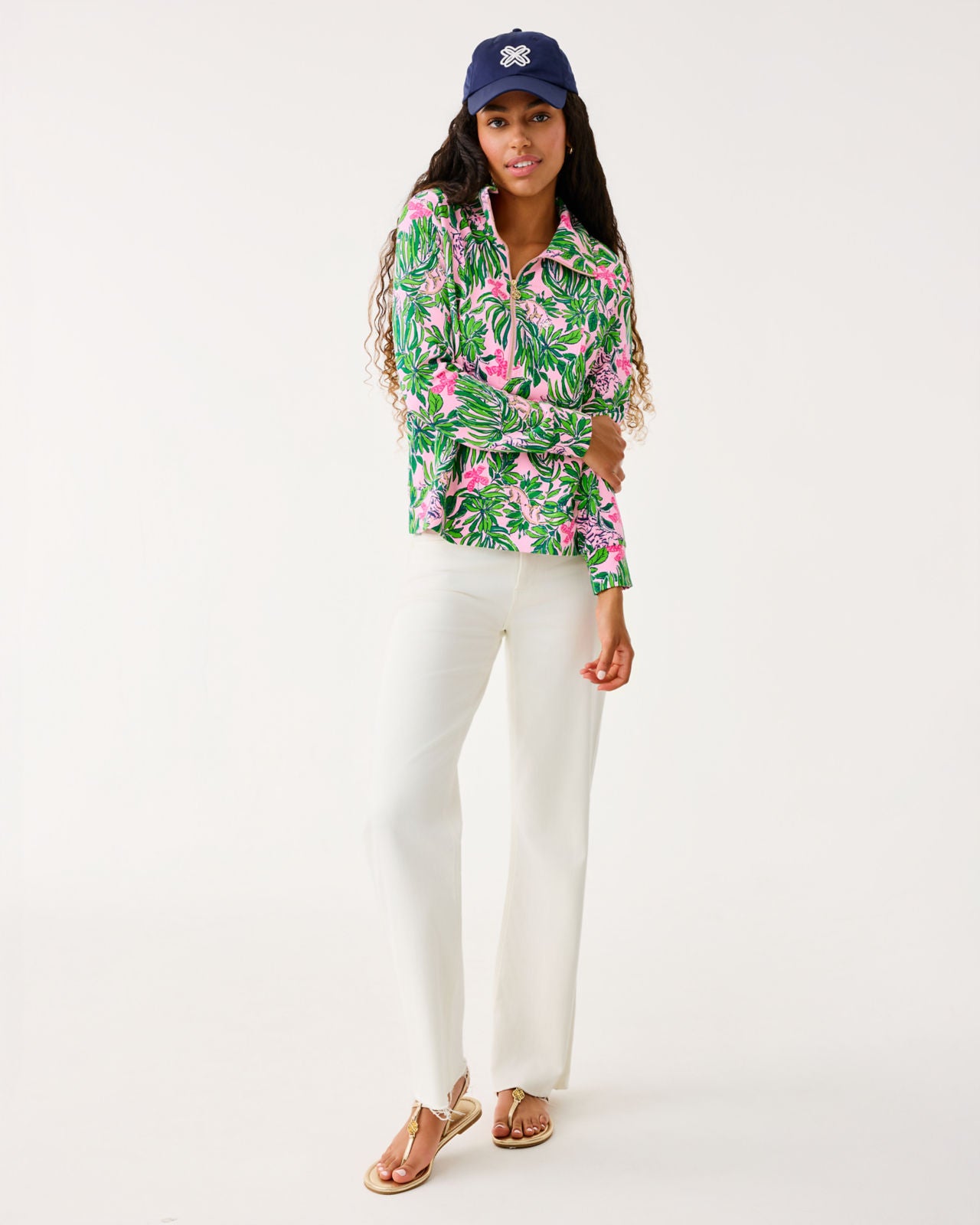 24.5" Easy fit half-zip machine washable terry popover with long sleeves,and seam detailing.