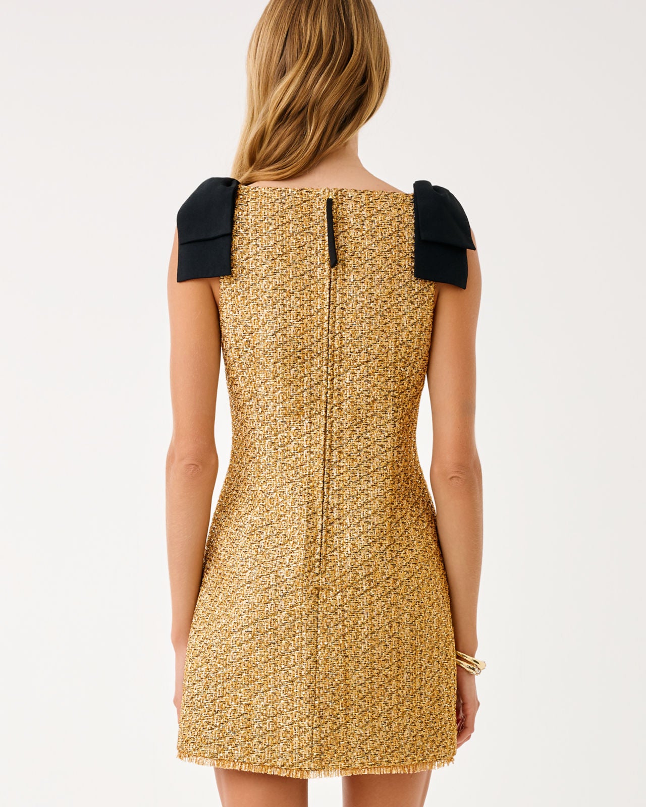Cora Skirted Romper In Gold Metallic Golden Glow Boucle