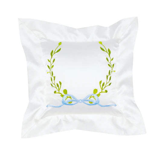 Puppy Dog Crest Pillow - Puppy with Blue Bow