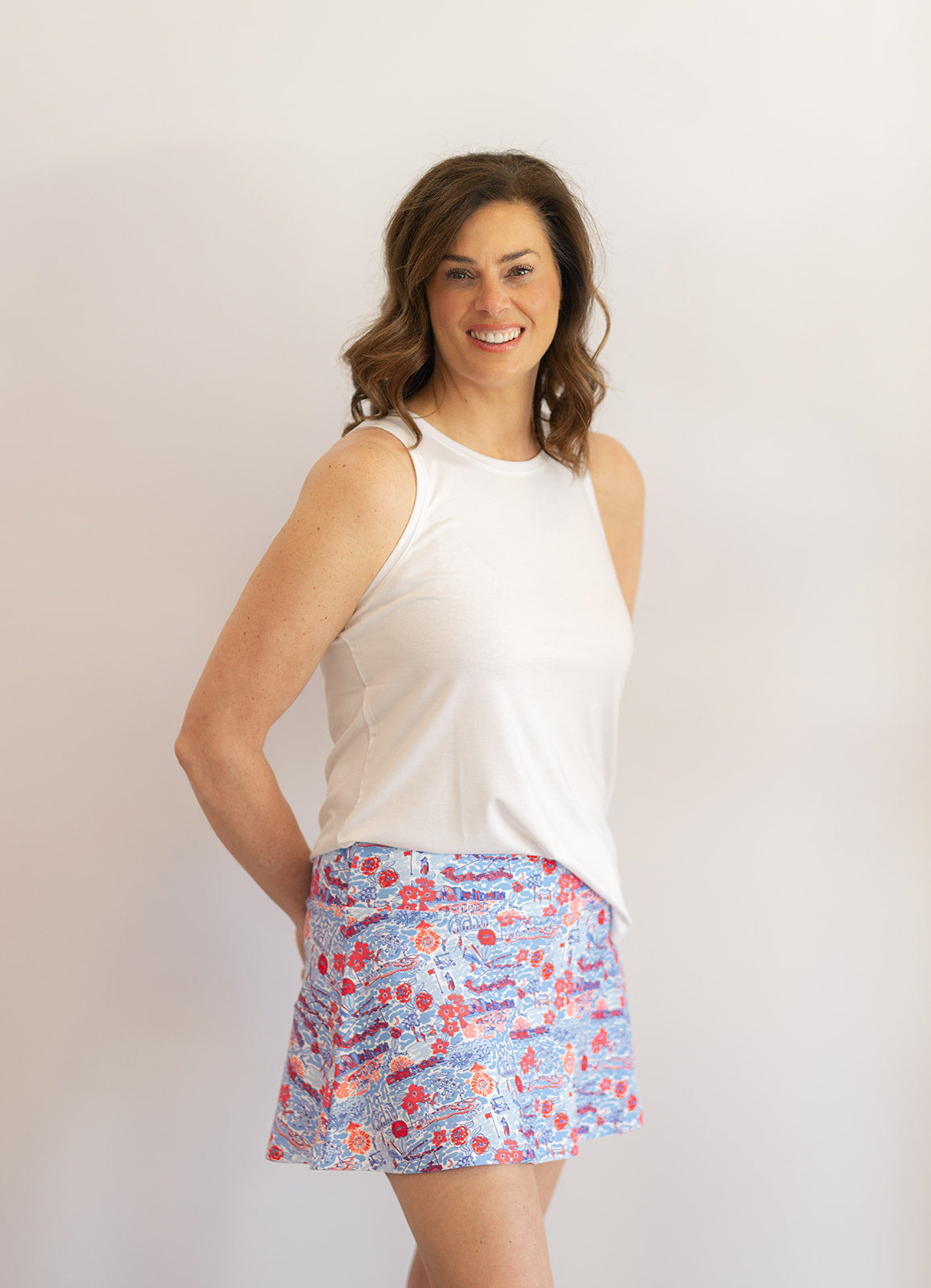13" length skort featuring a 2" waistband. Built-in shorts feature a ball pocket on side. Classic fit is true to size. Skort flares at the bottom for ease of movement. Constructed with Smith & Quinn's signature buttery soft stretch fabric.