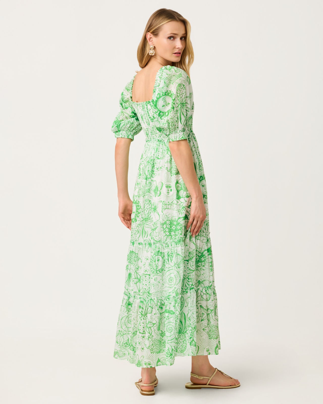 Hadly Short Sleeve Smocked Maxi Dress In Putting Green Fleur De Lilly