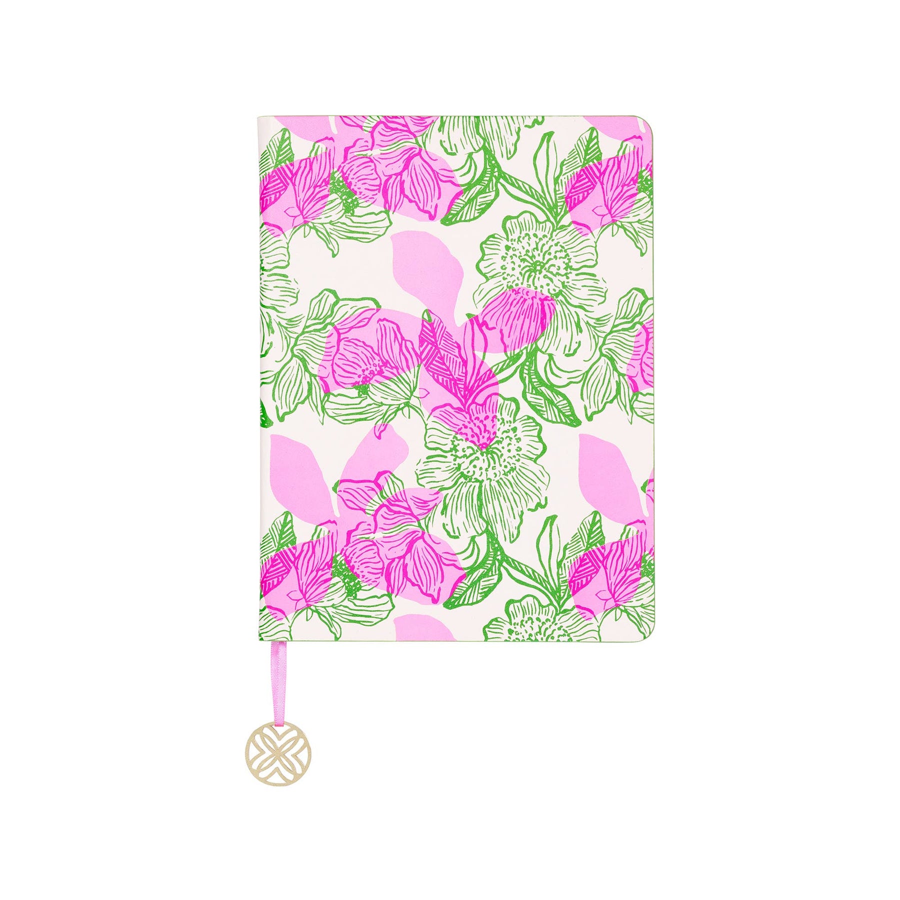 This keepsake journal features Lilly's Sunset Shadows Home pattern and includes 160 lined pages to jot down ideas big and small. The notebook includes a ribbon bookmark with a gold metal leaf charm to keep your place.
