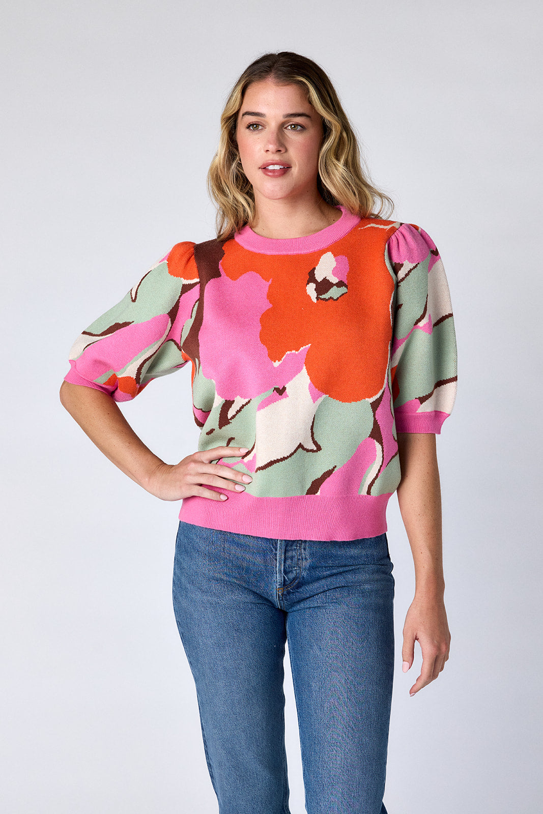 Lourdes Long Sleeve Top In Multi Dahlia Licious