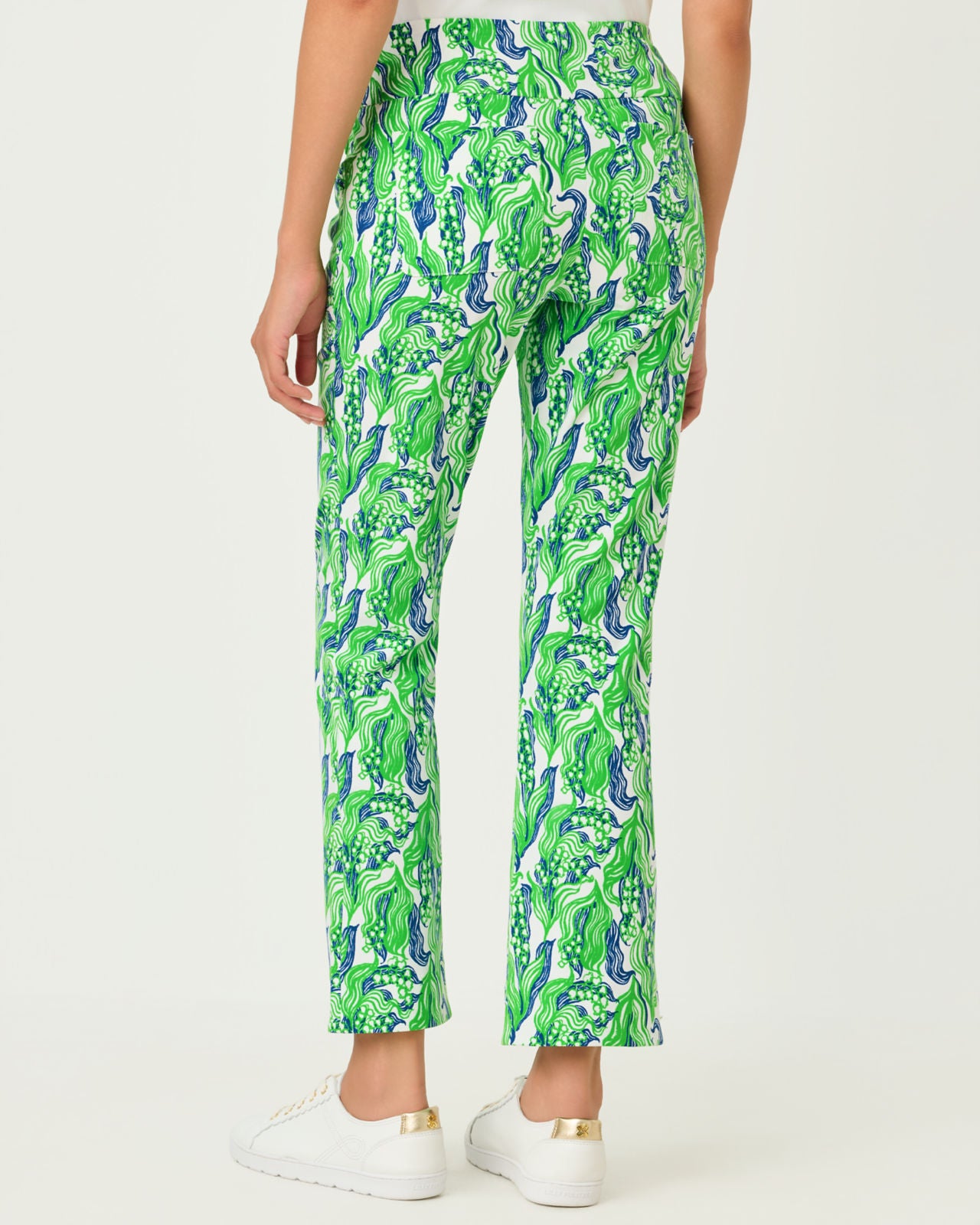 Luxletic 28" inseam stretch woven, pull-on golf pant with scallop detail and front and back pockets. UPF 50+ Moisture Wicking