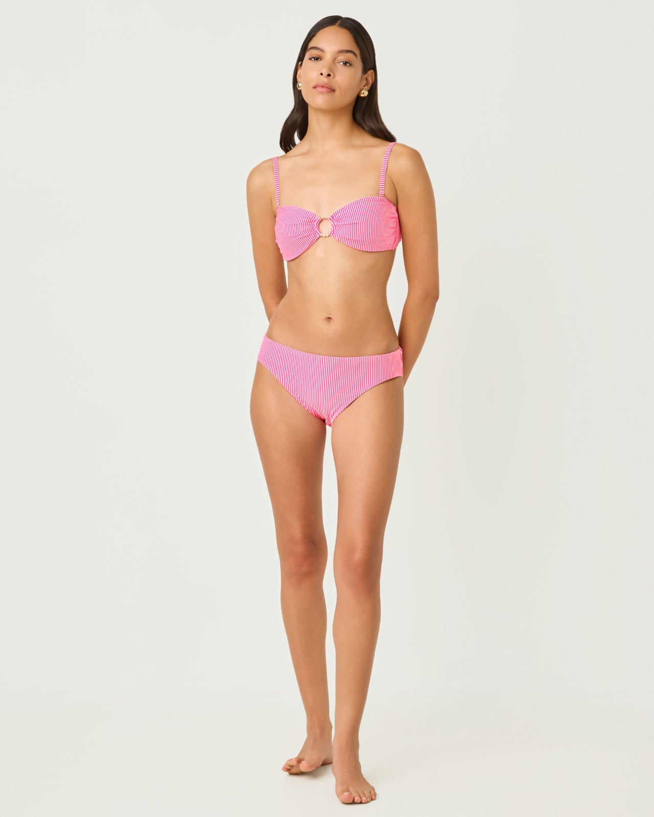 Betie Bikini Bottom In Cherry Blossom Pink Seersucker Stripe