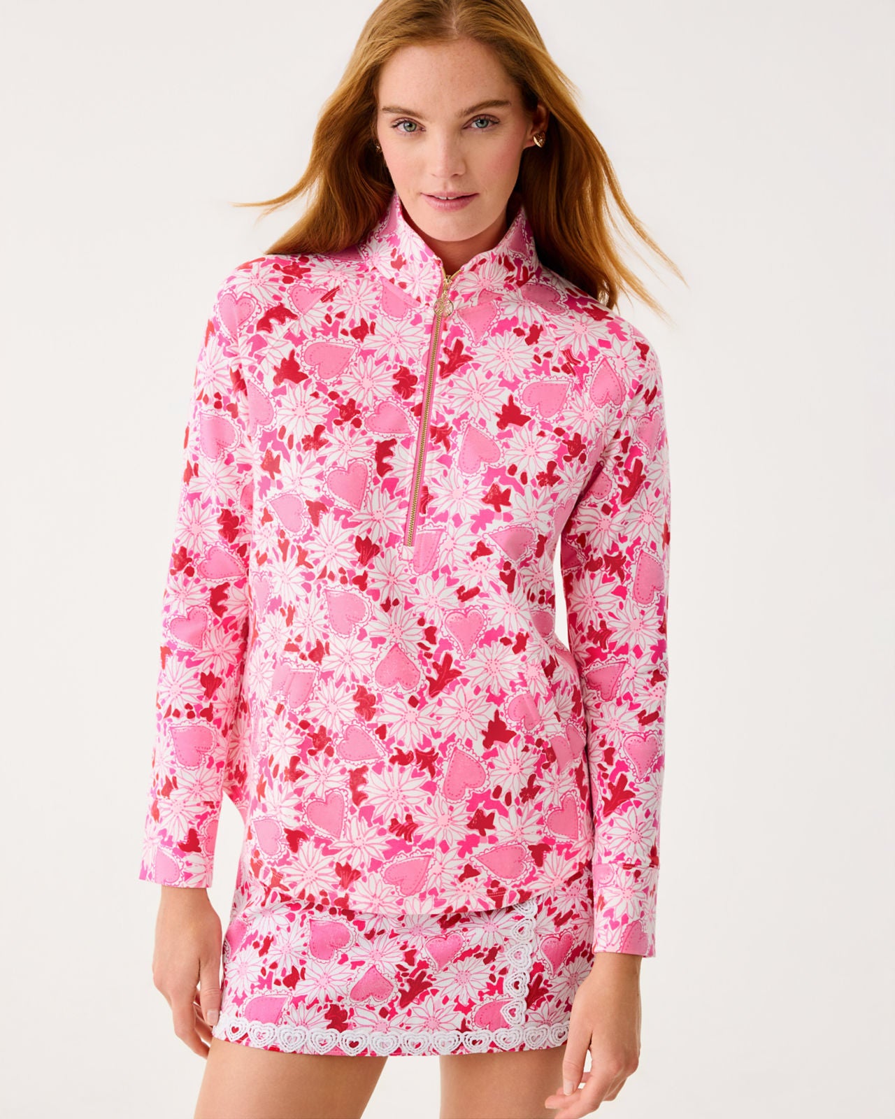 Eleni Pullover In Sun Shell Pink Butterfly Quilted Knit