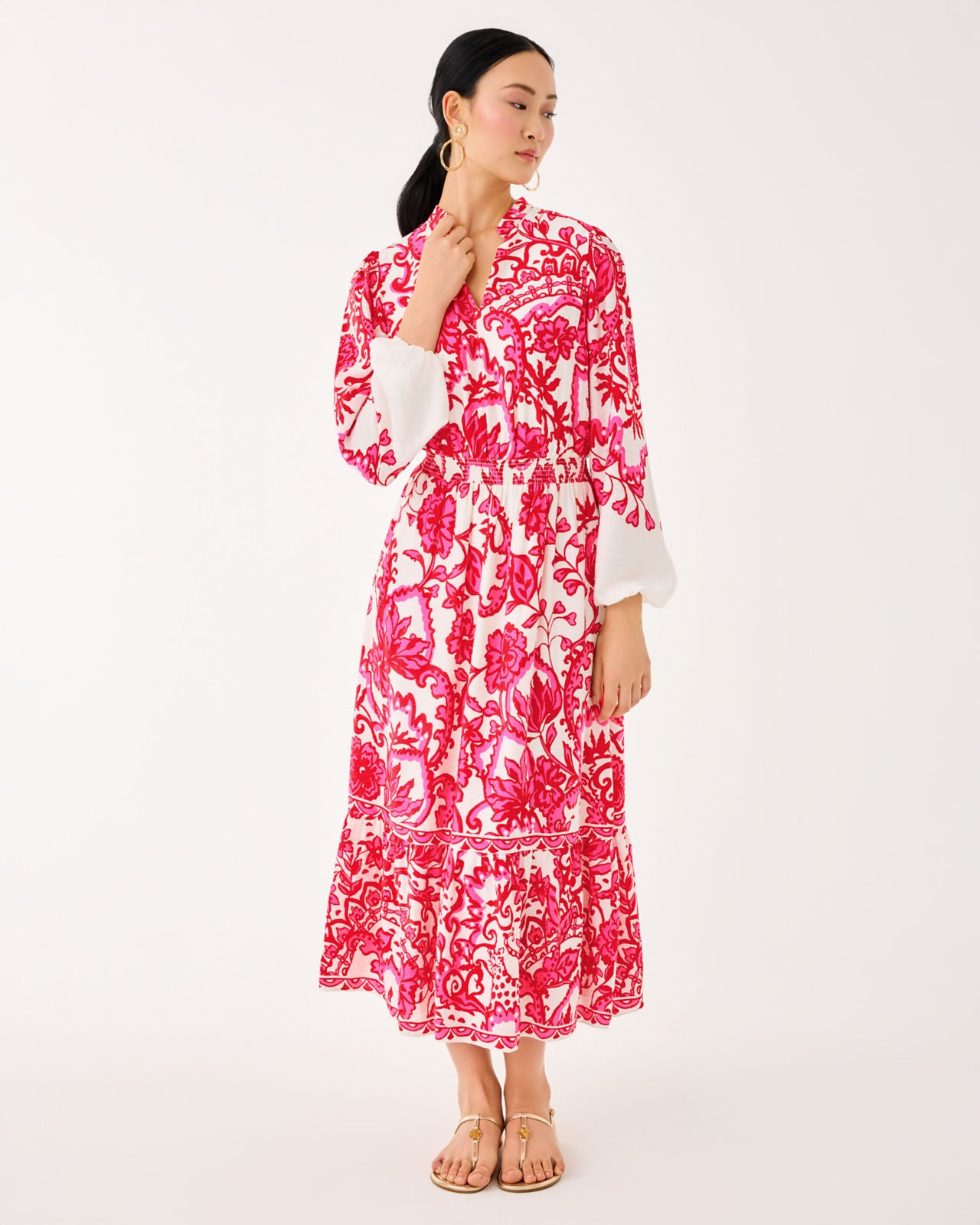 Tazie Dress In Sun Shell Pink Sunseeker Jacquard