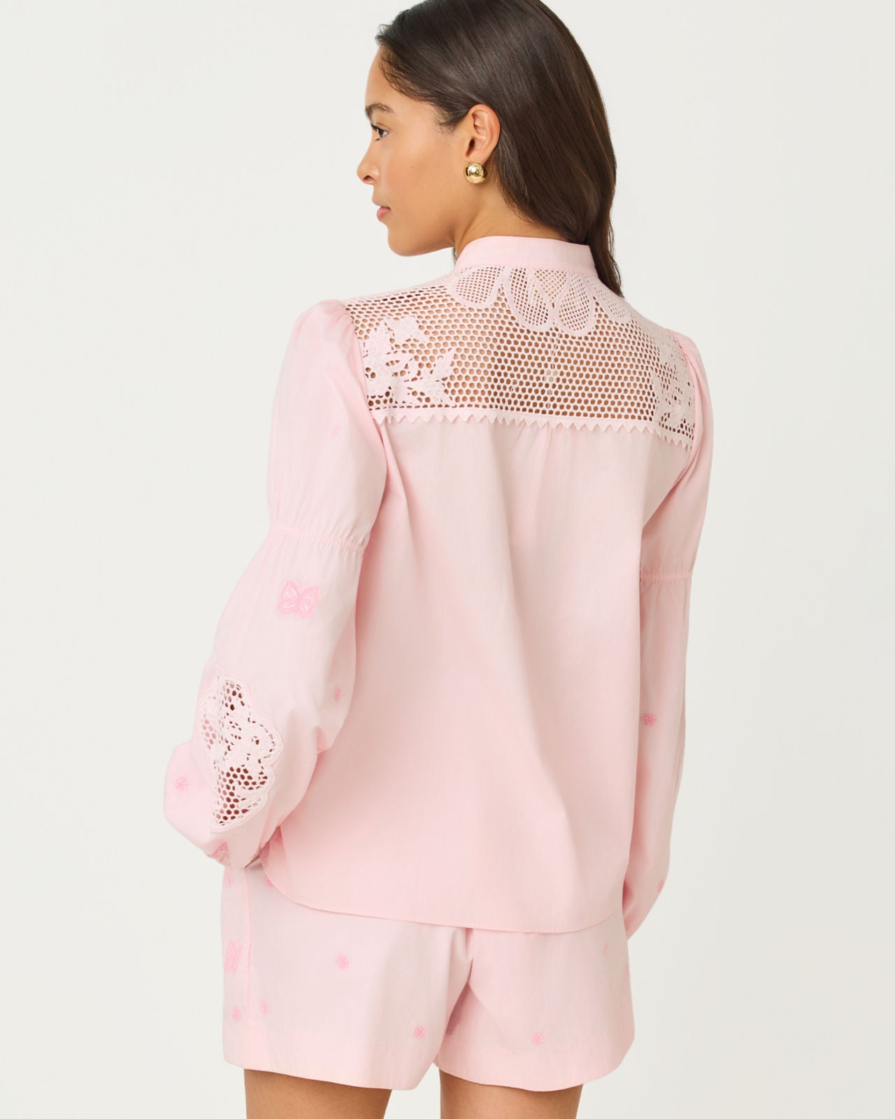 25'' from NHPS. Easy fit top with long sleeves and embroidery and lace details.