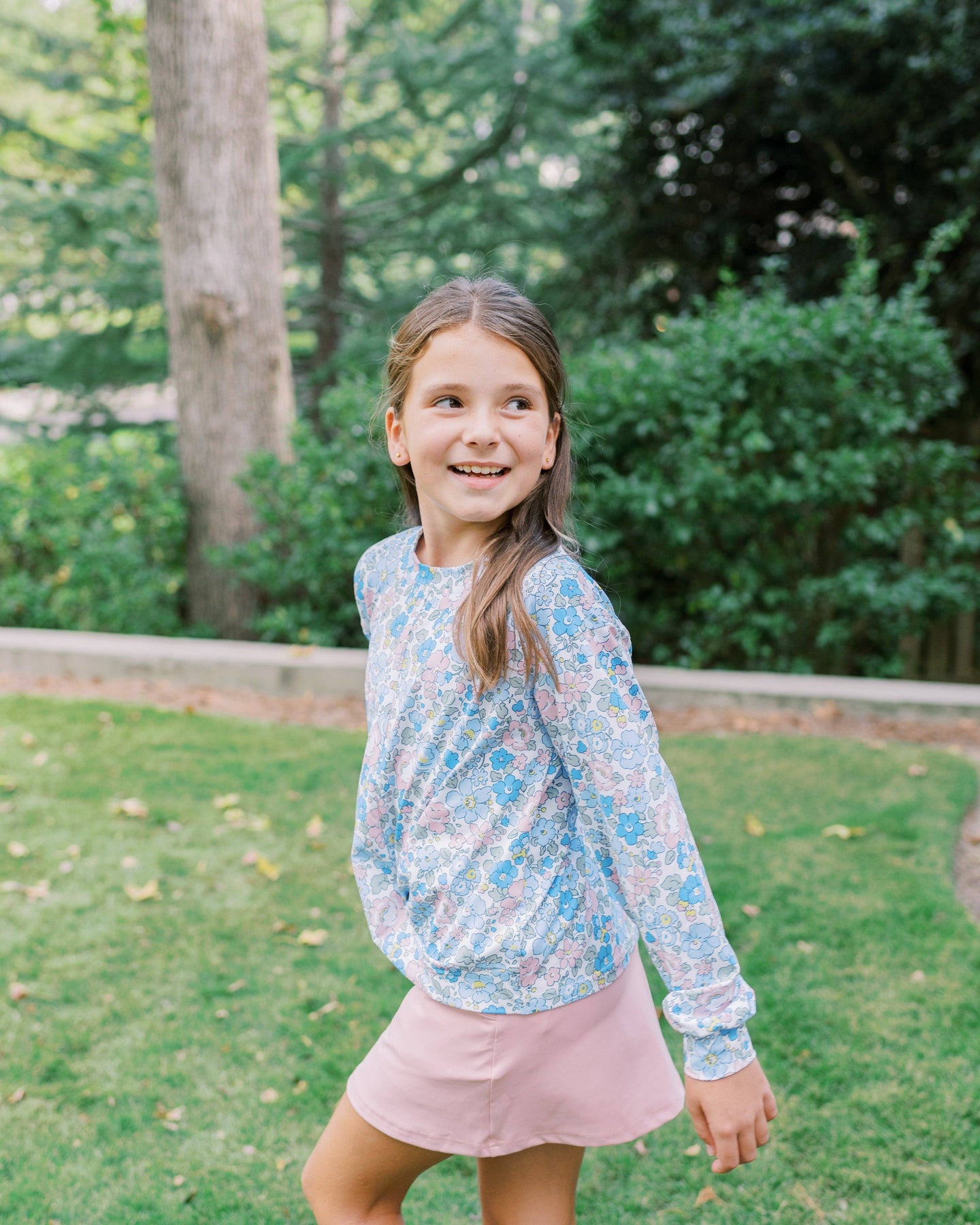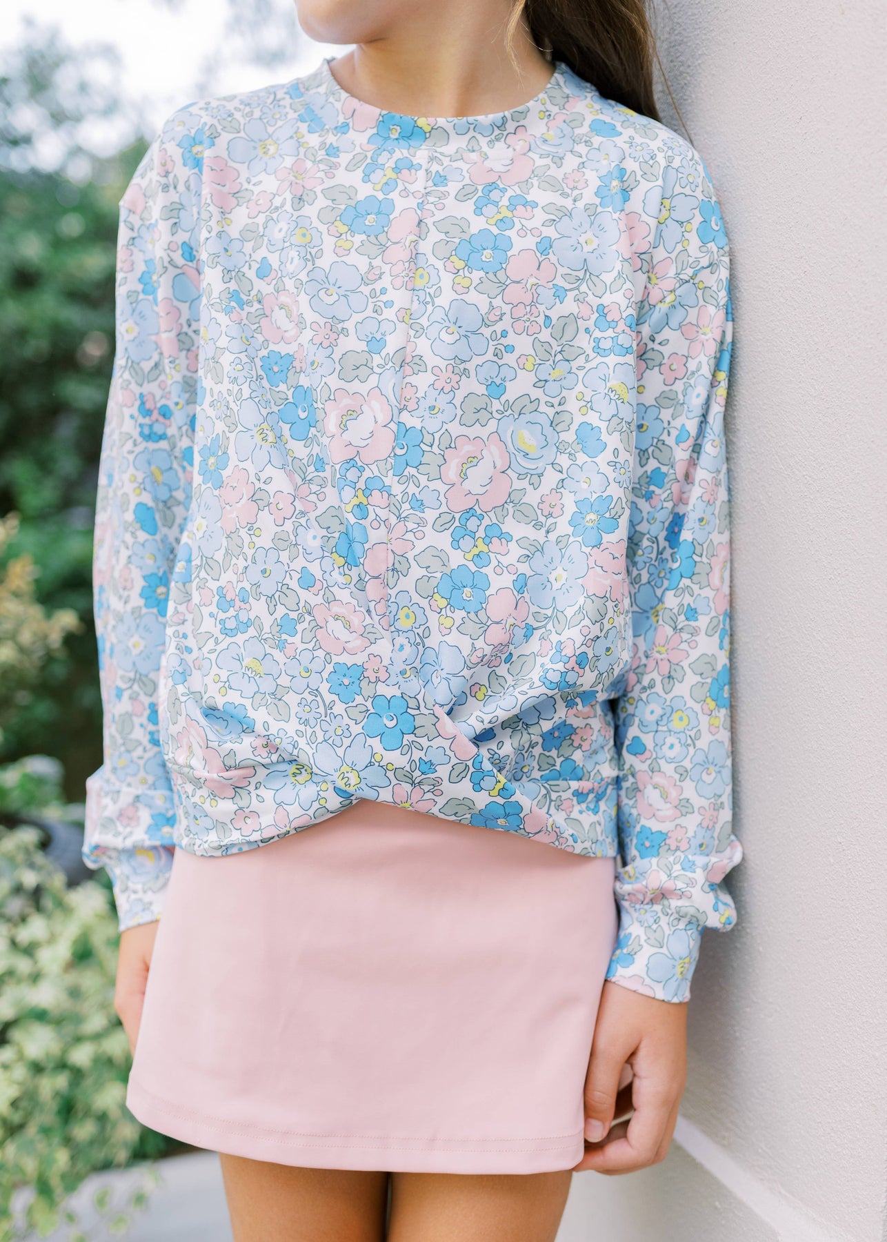 Playful, sweet, and effortlessly stylish—the Amelia Set in Posy Patch is a must-have for every girl’s wardrobe. This two-piece set features a floral top with a charming front twist detail, paired with a soft blush pink skirt designed with practical pockets for all her little treasures.